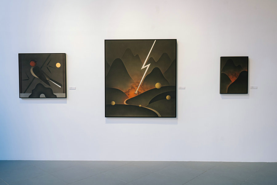 Ink Art: In A New Spirit, an exhibition University Arts Centre of The Chinese University of Hong Kong, Shenzhen, shows experimental works by ink artists from two generations. [Photo provided to China Daily]