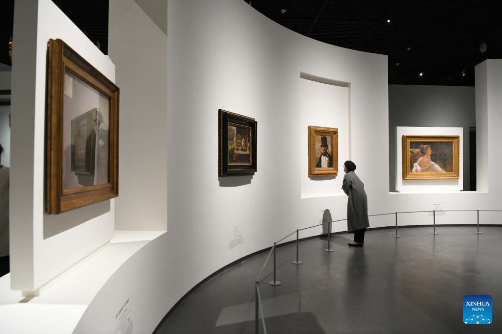 A visitor looks at a painting at an exhibition of modern and contemporary European artworks in Chengdu Museum in Chengdu, southwest China's Sichuan Province, Nov. 25, 2022. An exhibition of modern and contemporary European artworks kicked off Friday in the southwestern Chinese city of Chengdu.