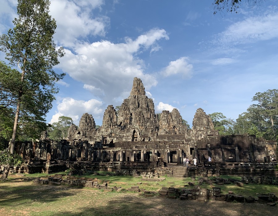 Photo taken on April 5, 2022 shows the Bayon Temple in the Angkor Archeological Park in Siem Reap province, Cambodia. (Photo by Van Pov/Xinhua)