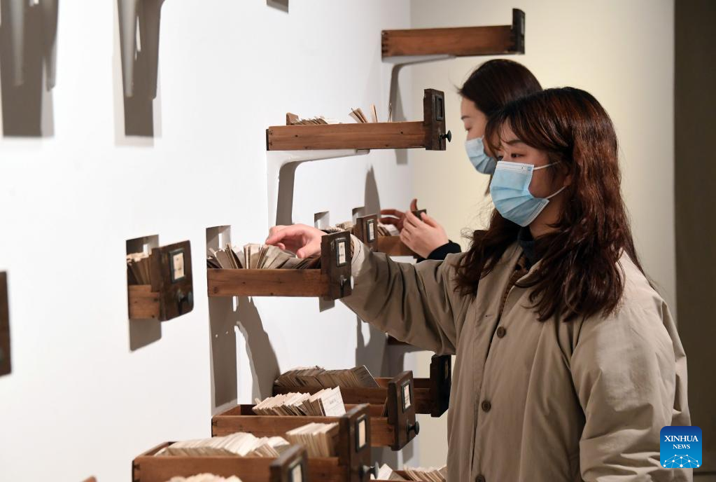 Visitors interact with art installations at Blooming Echoes, an exhibition featuring the combination of sound and modern art, at the Times Art Museum in Beijing, capital of China, Dec. 21, 2022. (Xinhua/Ren Chao)