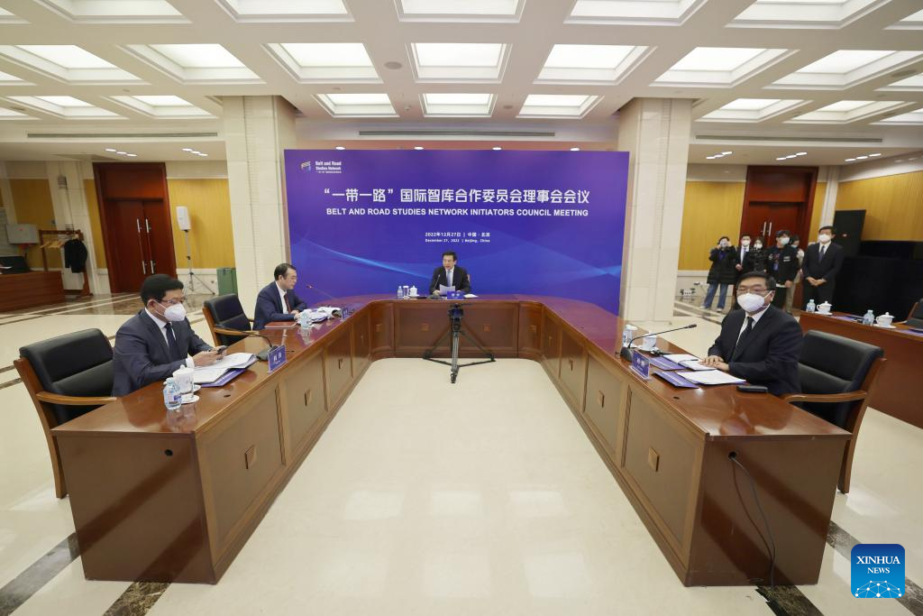 The Belt and Road Studies Network holds a meeting of its Initiators Council, both online and offline, Dec. 27, 2022. (Xinhua/Xing Guangli)