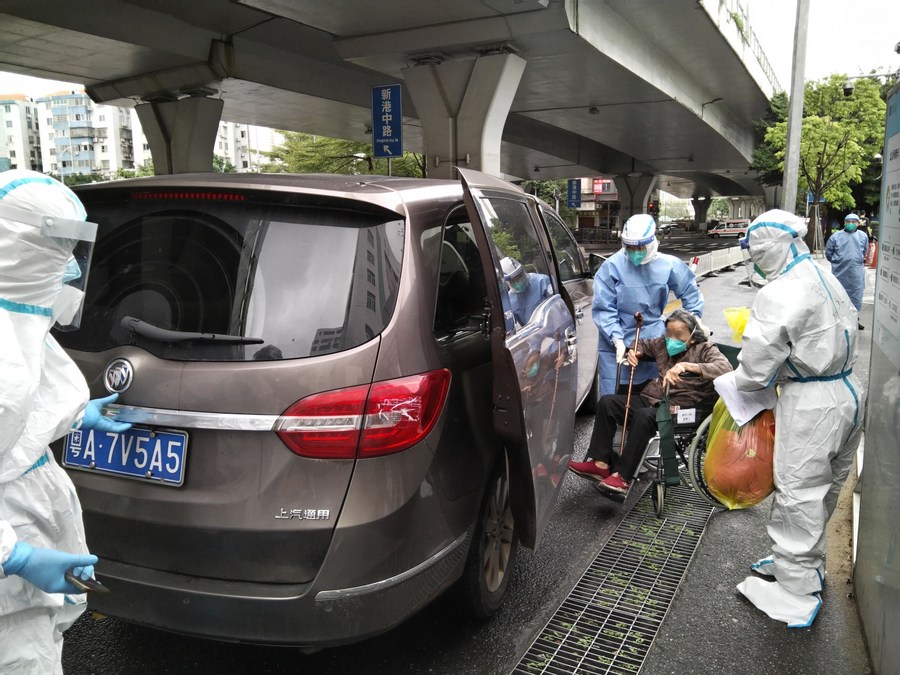 The woman, who has high blood pressure and diabetes, was sent to the center under the advice of her family doctor in a telephone follow-up. In Jiuting, COVID-19 patients aged above 65 are interviewed by local health workers on a daily basis to prevent progression to severe conditions.