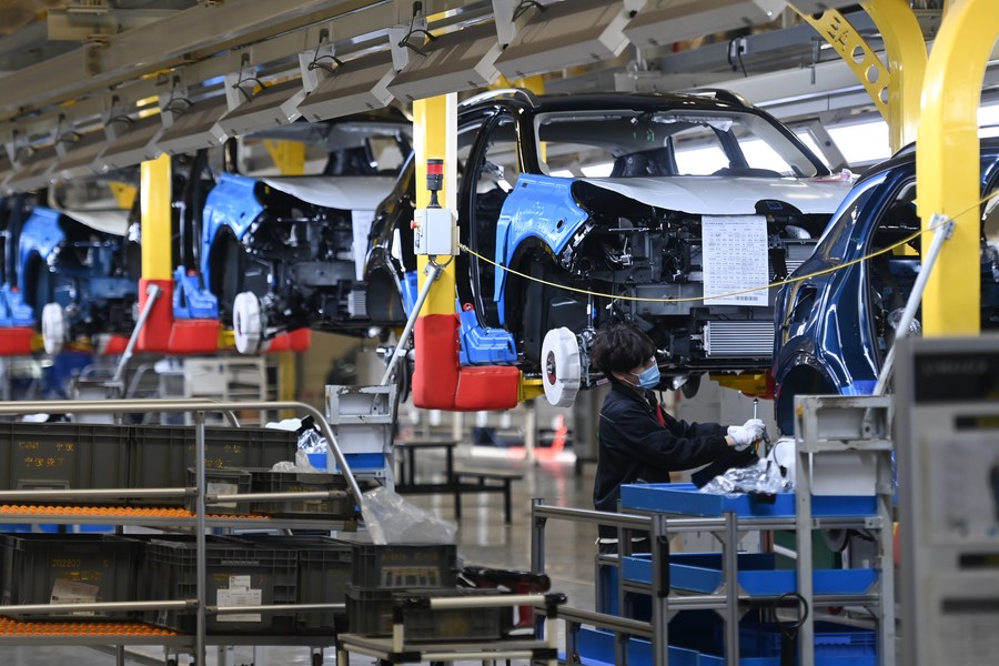 An employee works at an automobile company in Yuyao, east China's Zhejiang Province, Jan. 5, 2023. (Xinhua/Huang Zongzhi)