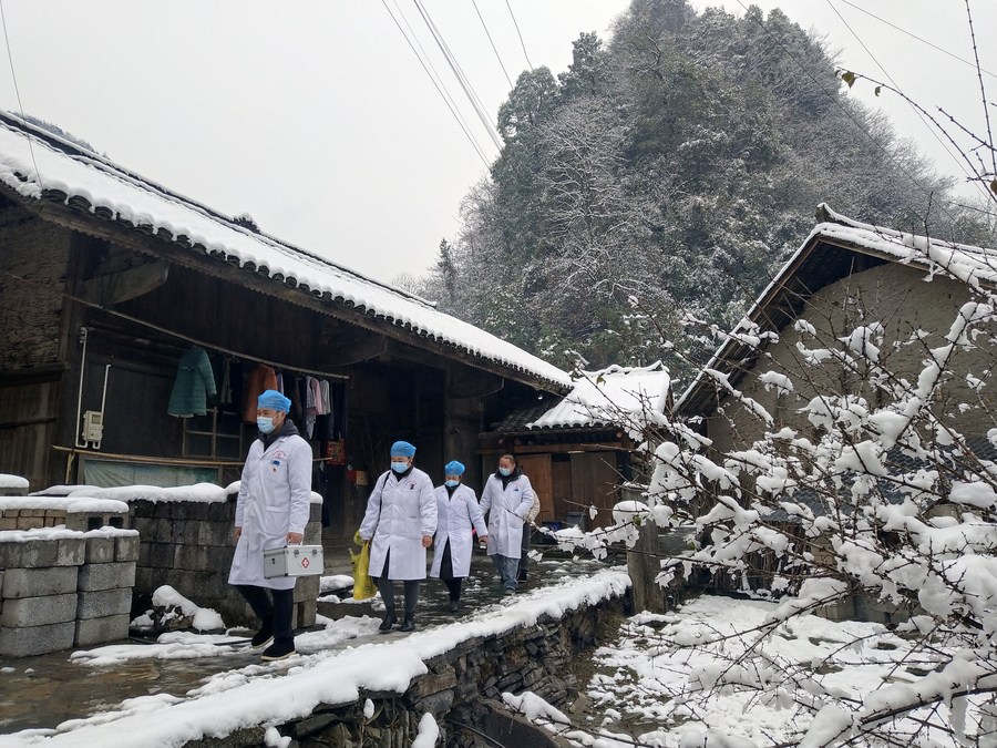 Rural doctors visit local households to provide medical support in Jiwei Town of Huayuan County, central China's Hunan Province, Dec. 29, 2022. (Photo by Jian Biao/Xinhua)