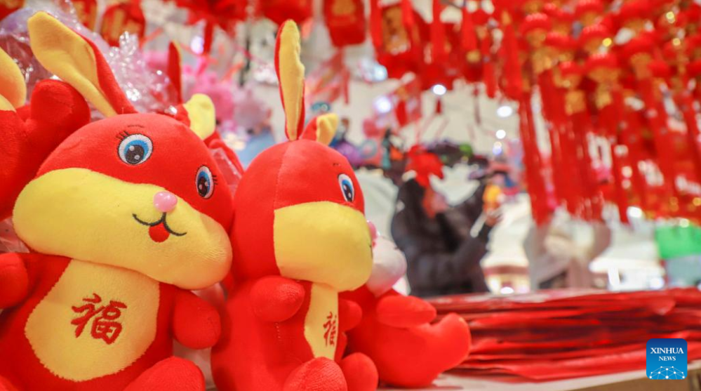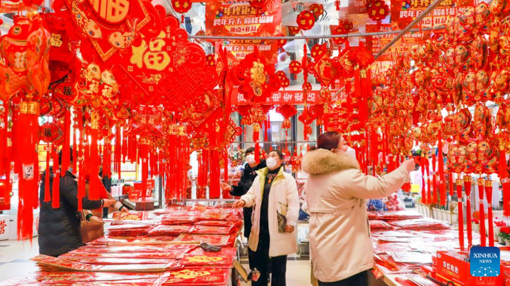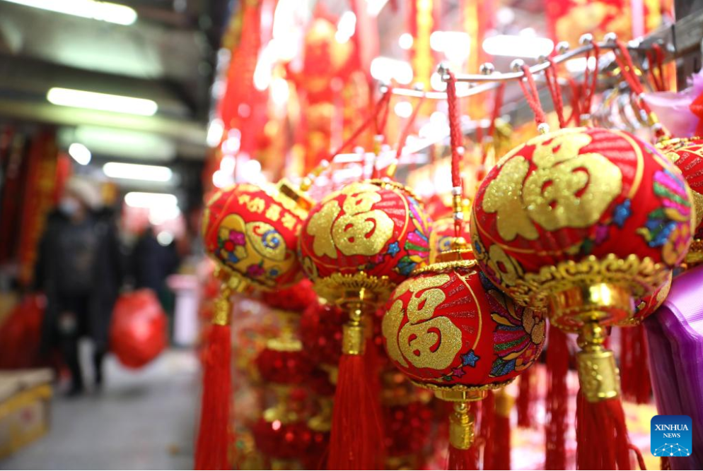 This photo shows a variety of decorations for the Spring Festival at a market in Shenyang, northeast China's Liaoning Province, Jan. 11, 2023. Markets across the country are full of vitality as the Spring Festival draws near. (Xinhua/Yao Jianfeng)