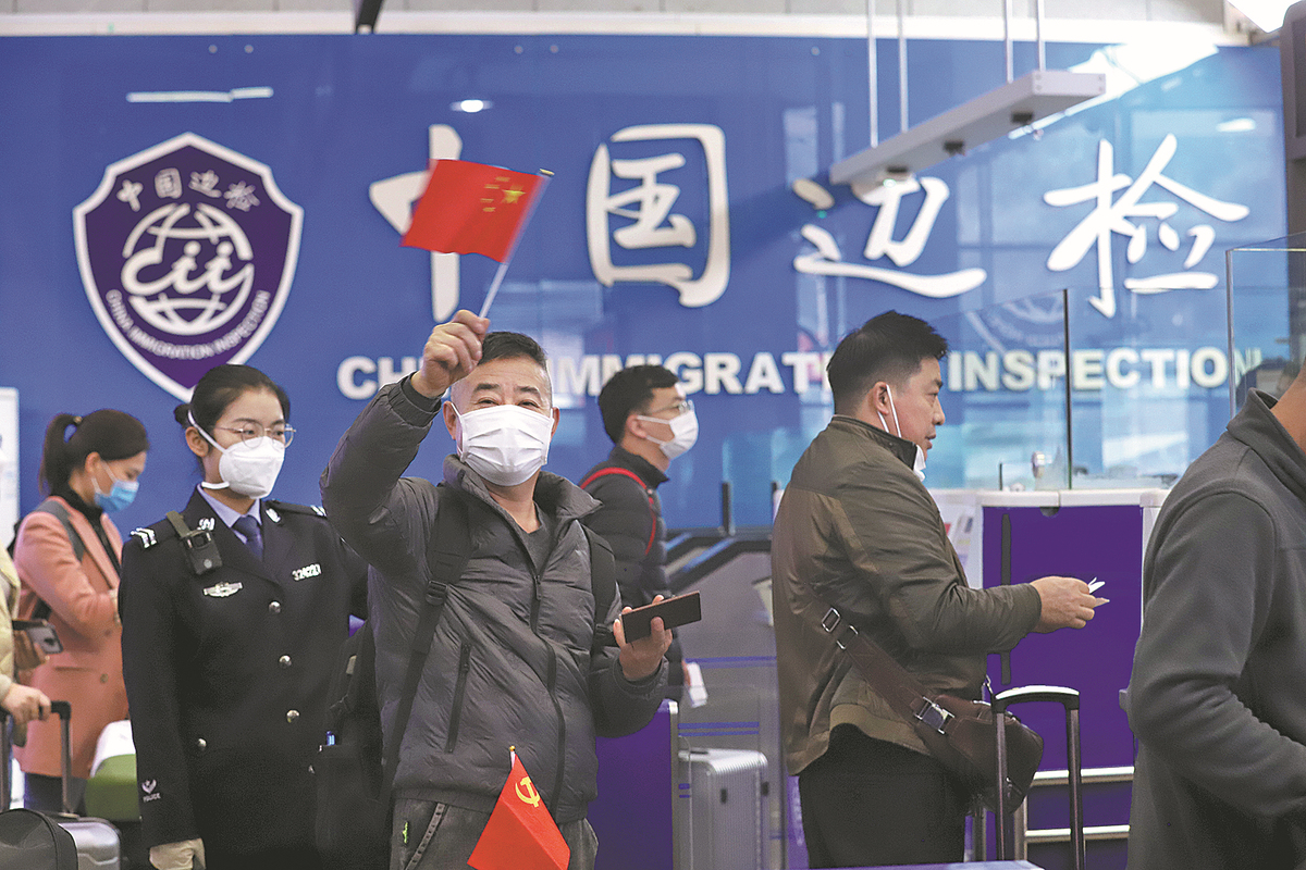 Travelers from China and neighboring countries at land ports nationwide were overjoyed to be reunited with their loved ones. Local officials and businesses also welcomed the return of customers and goods, along with the hustle and bustle at border cities.
