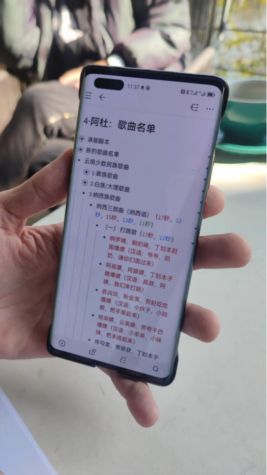 As he learned each song, he took notes carefully, not only singing along, but also understanding its meaning. For example, the Naxi Trilogy is divided into three chapters: the song of hitting and dancing, the song of happiness and the song of toasting. In his notes, Andre used his own way to mark the pronunciation.
