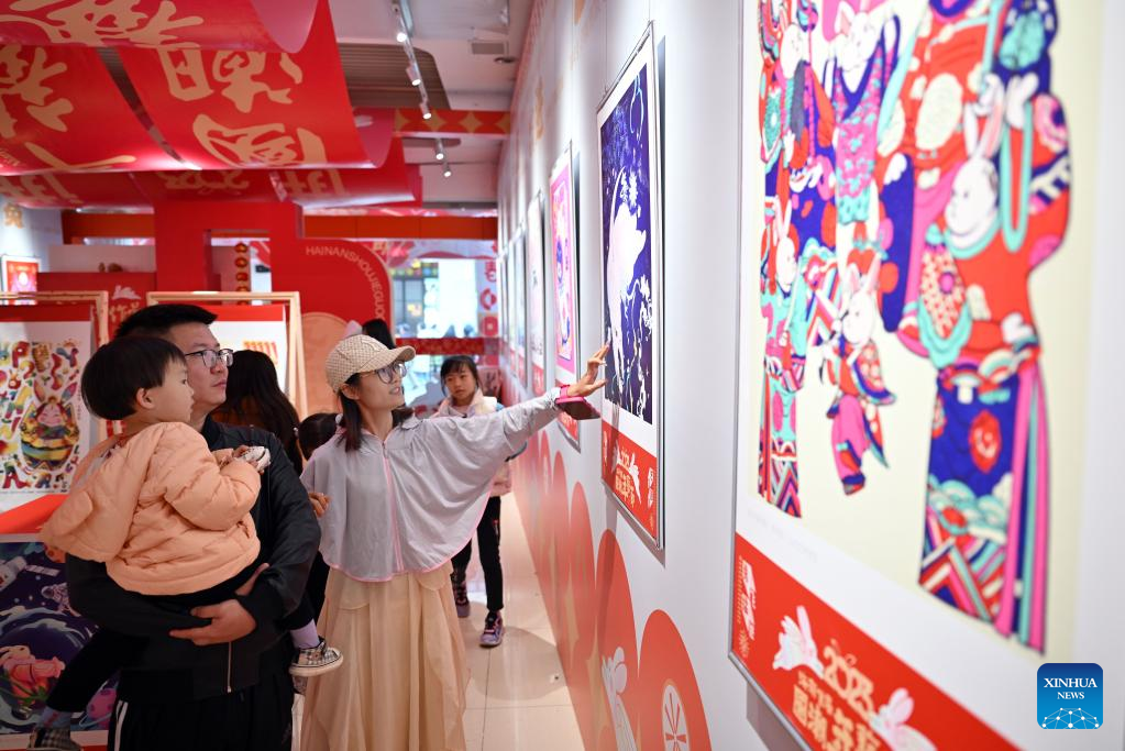 Tourists visit an exhibition at the Qilou ancient street during the Spring Festival holiday in Haikou, south China's Hainan Province, Jan. 27, 2023. (Xinhua/Guo Cheng)