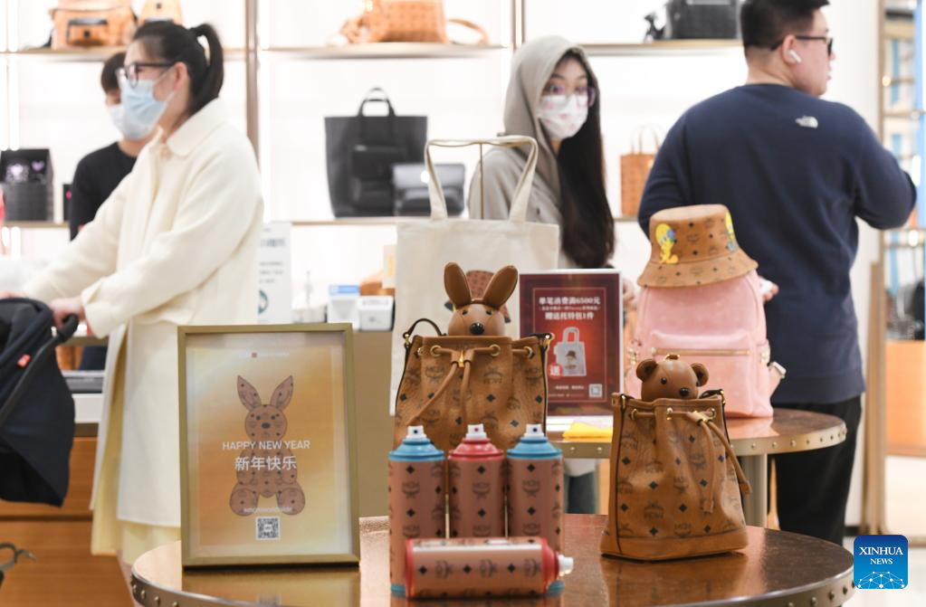 People shop at Haikou Riyue Plaza Duty Free Shop in Haikou, south China's Hainan Province, Jan. 25, 2023. Tourists went shopping in Hainan, a major tourist destination for visitors in winter, during the Spring Festival holiday. (Xinhua/Yang Guanyu)
