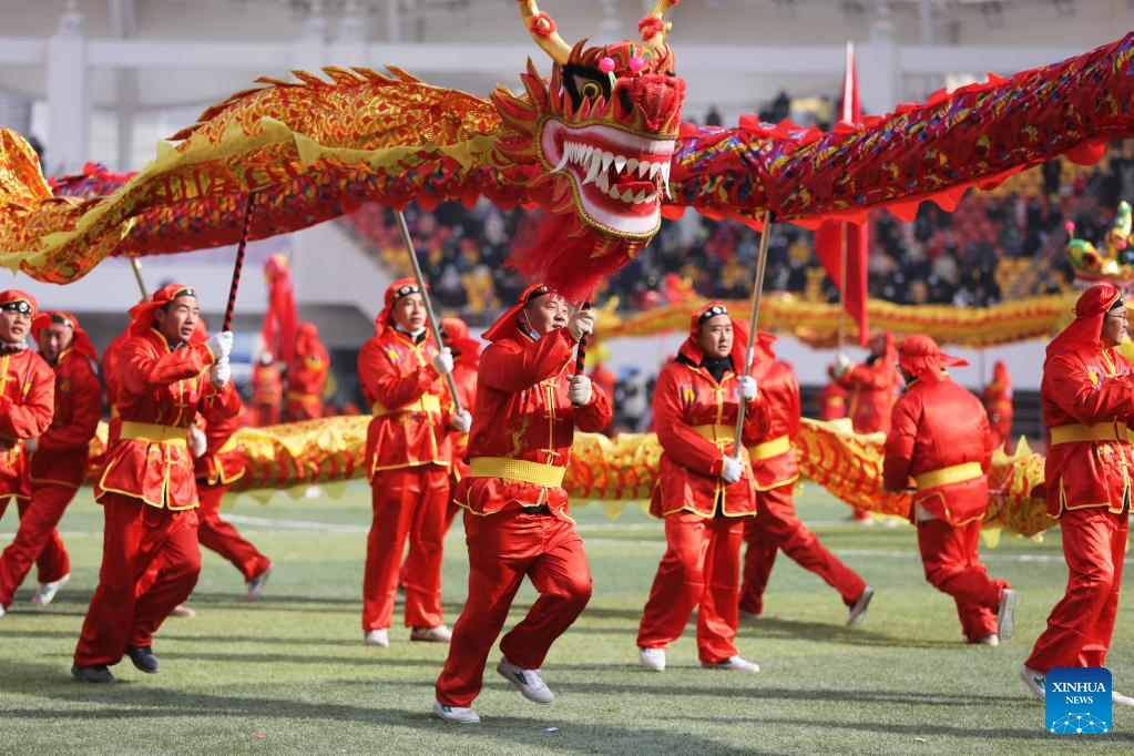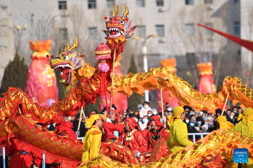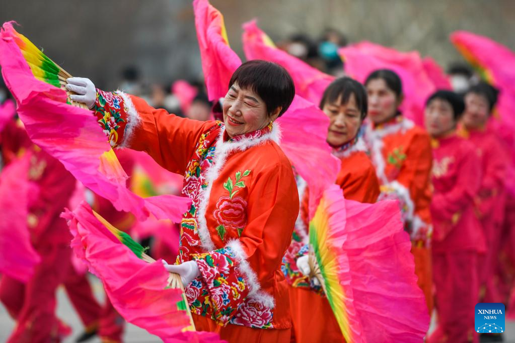 People perform in Baiyin City, northwest China's Gansu Province, Feb. 5, 2023. Various events are held across the country to celebrate the Lantern Festival, the 15th day of the first month of the Chinese lunar calendar, which falls on Feb. 5 this year. (Xinhua/Chen Bin)
