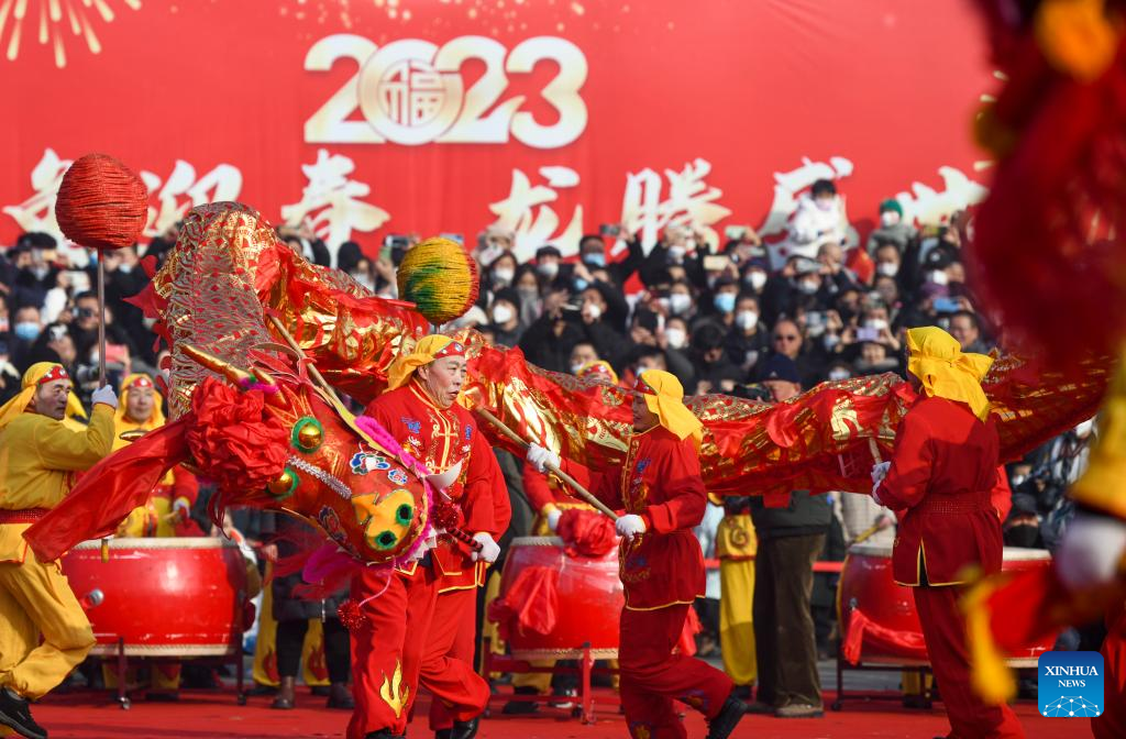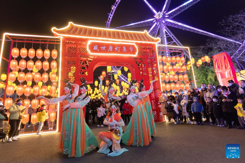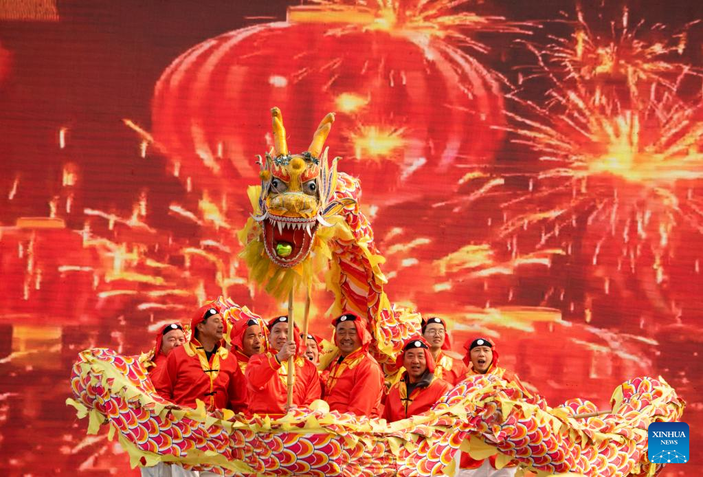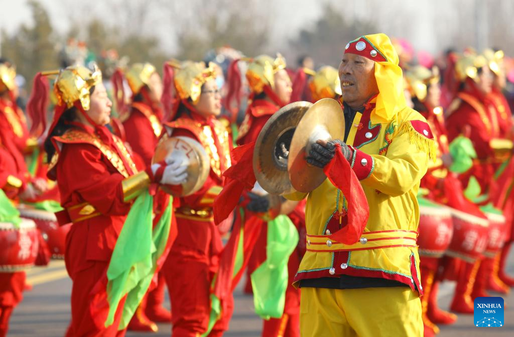 Folk artists perform in Nanhe District of Xingtai City, north China's Hebei Province, Feb. 5, 2023. Various events are held across the country to celebrate the Lantern Festival, the 15th day of the first month of the Chinese lunar calendar, which falls on Feb. 5 this year. (Photo by Zhang Chi/Xinhua)