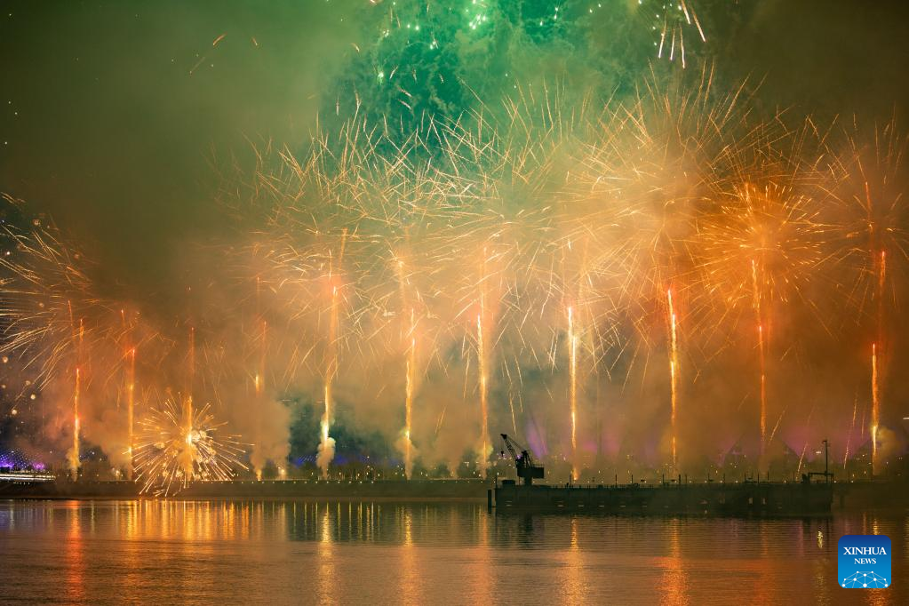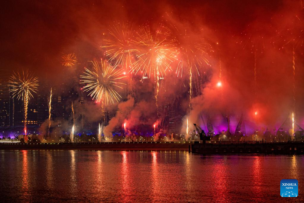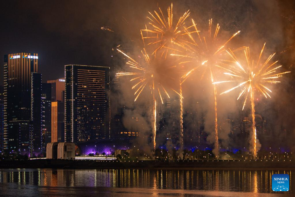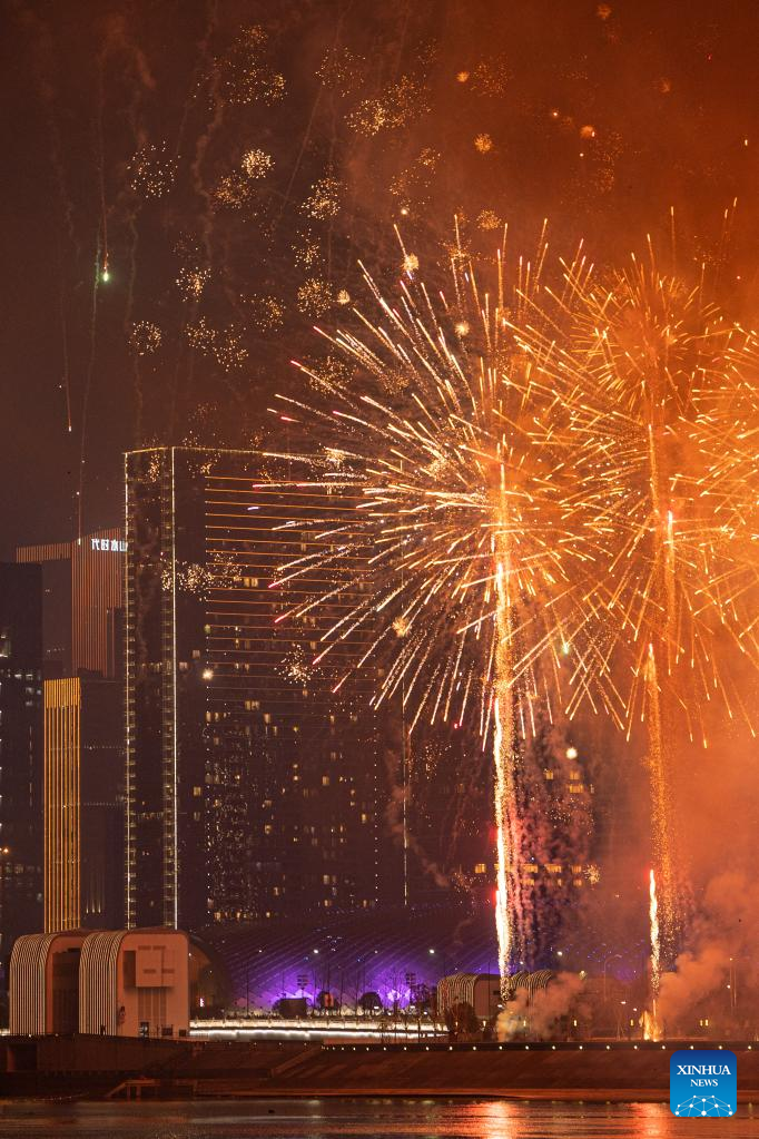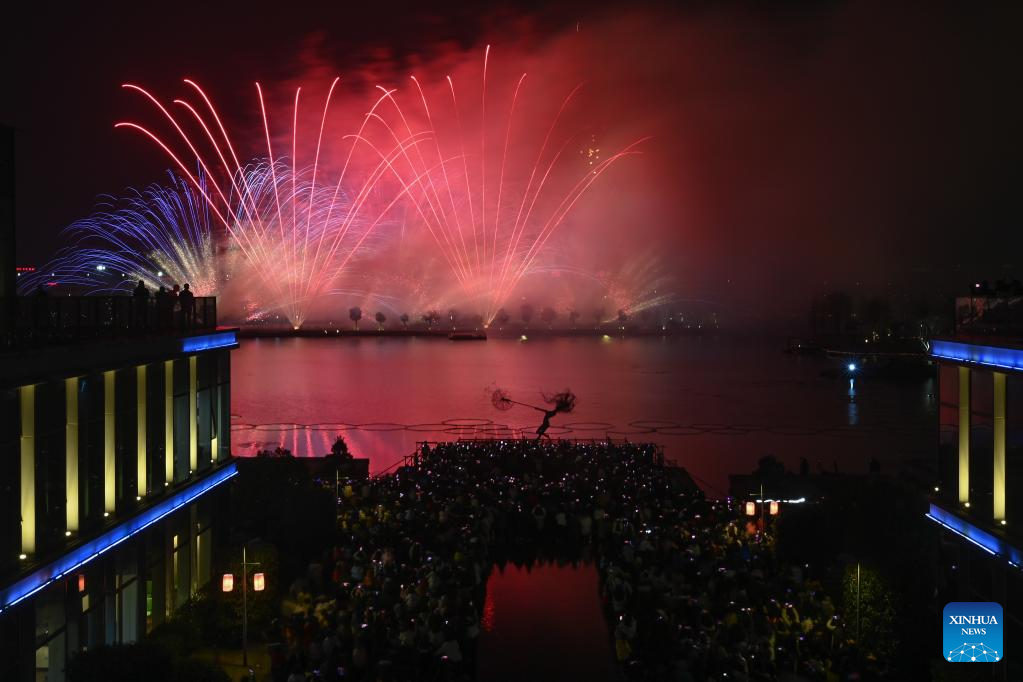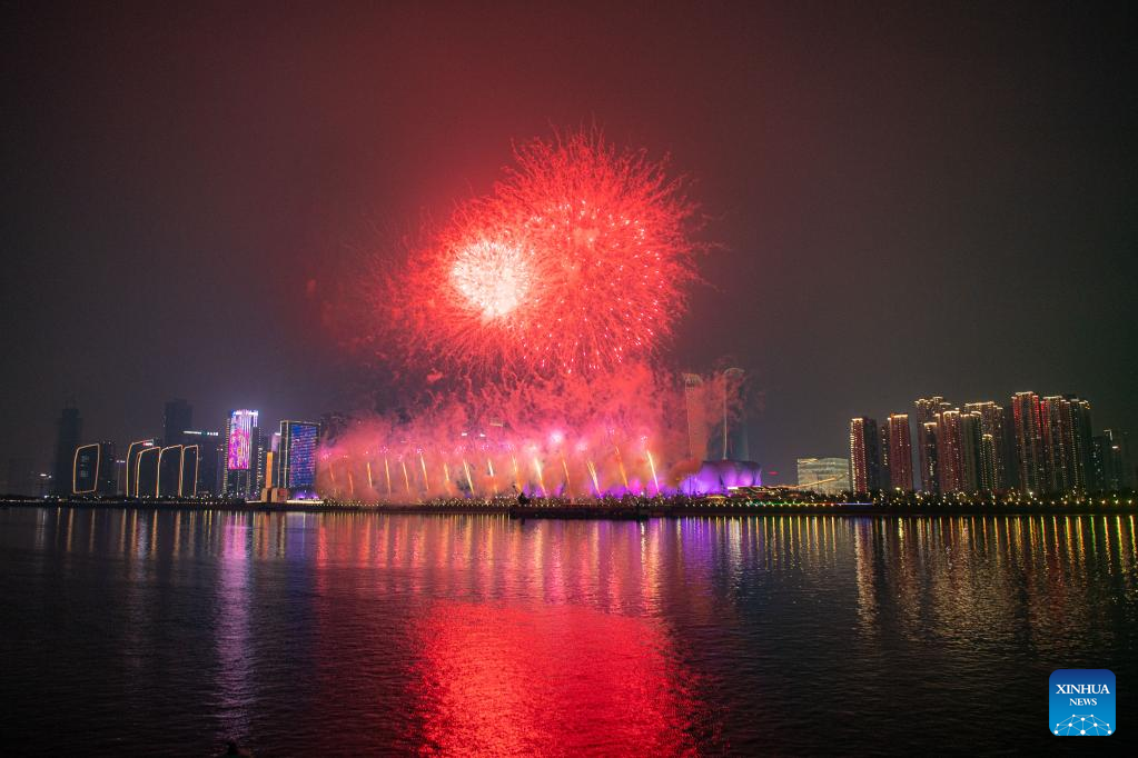 Fireworks explode in celebration of the Lantern Festival in Hangzhou, capital of east China's Zhejiang Province, Feb. 5, 2023. (Xinhua/Huang Zongzhi)