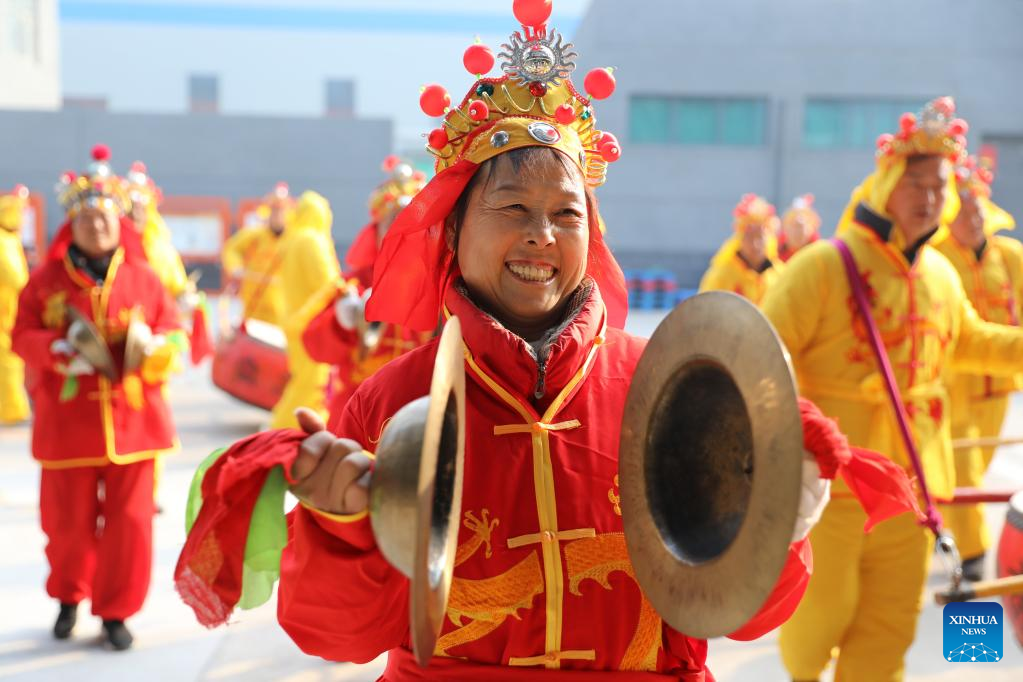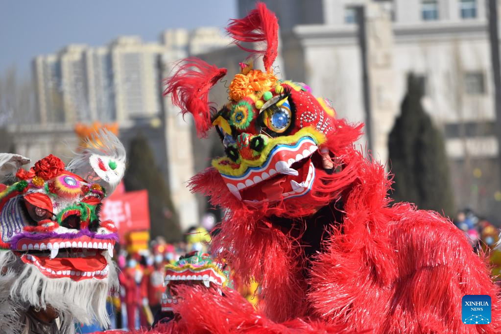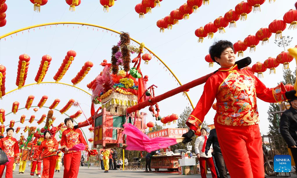 Folk artists perform in Yuanshi County of Shijiazhuang City, north China's Hebei Province, Feb. 5, 2023. Various events are held across the country to celebrate the Lantern Festival, the 15th day of the first month of the Chinese lunar calendar, which falls on Feb. 5 this year. (Photo by Liang Zidong/Xinhua)