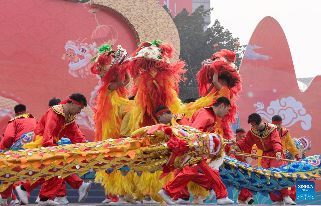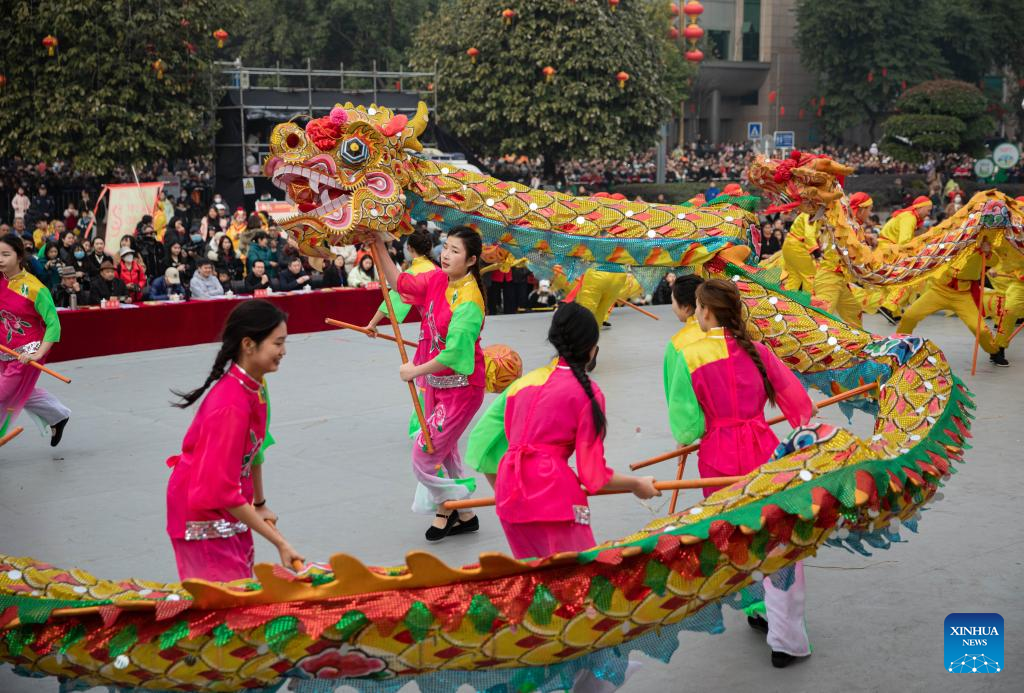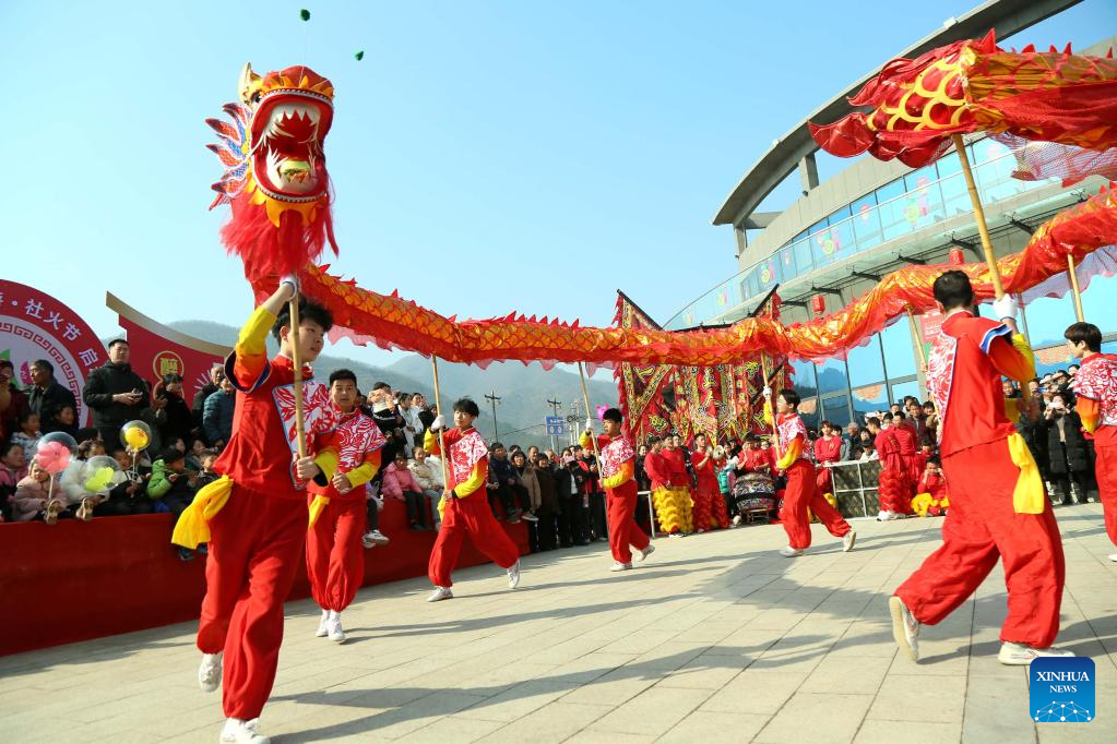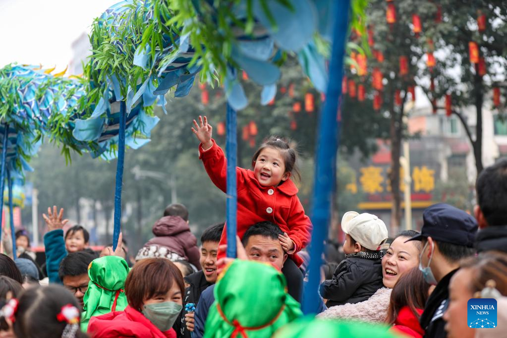 People perform in Luxian County, southwest China's Sichuan Province, Feb. 5, 2023. Various events are held across the country to celebrate the Lantern Festival, the 15th day of the first month of the Chinese lunar calendar, which falls on Feb. 5 this year. (Xinhua/Jiang Hongjing)