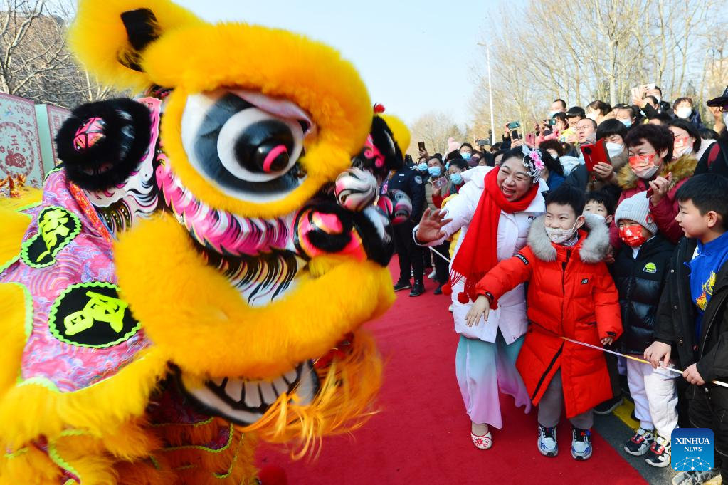 People watch a lion dance performance in Qingdao, east China's Shandong Province, Feb. 5, 2023. Various events are held across the country to celebrate the Lantern Festival, the 15th day of the first month of the Chinese lunar calendar, which falls on Feb. 5 this year. (Photo by Wang Haibin/Xinhua)
