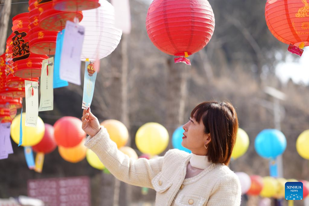 A woman guesses lantern riddles in Neiqiu County of Xingtai City, north China's Hebei Province, Feb. 5, 2023. Various events are held across the country to celebrate the Lantern Festival, the 15th day of the first month of the Chinese lunar calendar, which falls on Feb. 5 this year. (Photo by Liu Jidong/Xinhua)