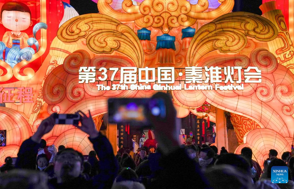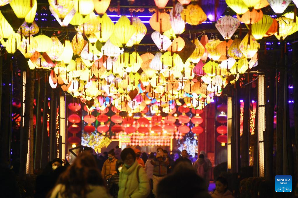 Tourists visit a lantern fair at the Fuzi (Confucius) Temple scenic area in Nanjing, east China's Jiangsu Province, Feb. 4, 2023. Lantern fairs and light shows were held to celebrate the Lantern Festival, which falls on Feb. 5 this year. (Xinhua/Li Bo)