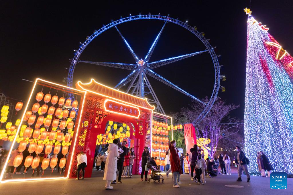 Tourists visit a lantern fair at Jinjiang amusement park in east China's Shanghai, Feb. 4, 2023. Lantern fairs and light shows were held to celebrate the Lantern Festival, which falls on Feb. 5 this year. (Xinhua/Wang Xiang)