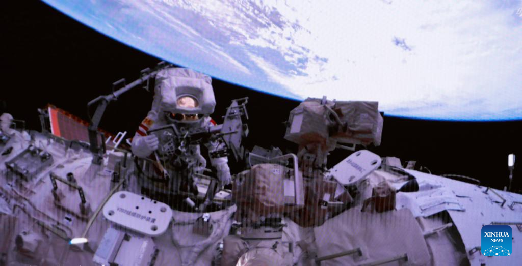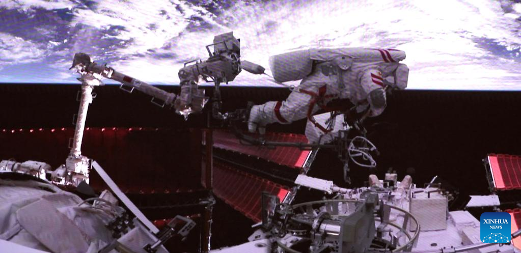 The Shenzhou-15 taikonauts on board the orbiting Chinese Tiangong space station completed their first spacewalk at 12:16 a.m. (Beijing Time) on Friday, according to the China Manned Space Agency.