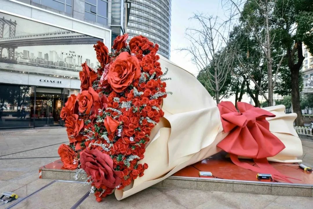 It is understood that this huge bouquet of roses was named "a bunch of flowers for Kunming", which is part of the "GIVE ME A HUG" activity for the Valentine's Day at Shuncheng Shopping Center.
