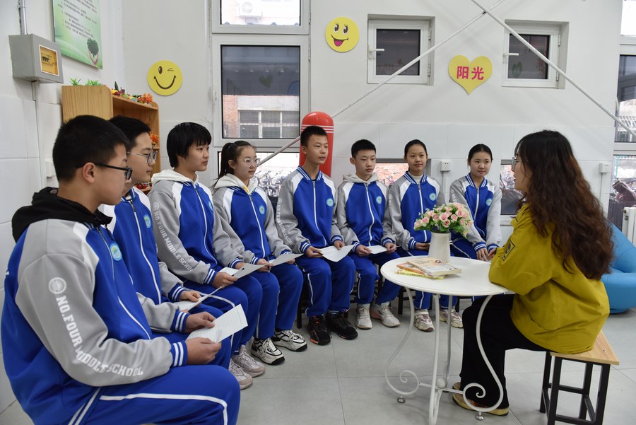 Students attend psychology class at Hengshui No. 4 Middle School in Hengshui, north China's Hebei Province, Feb. 13, 2023. (Xinhua)