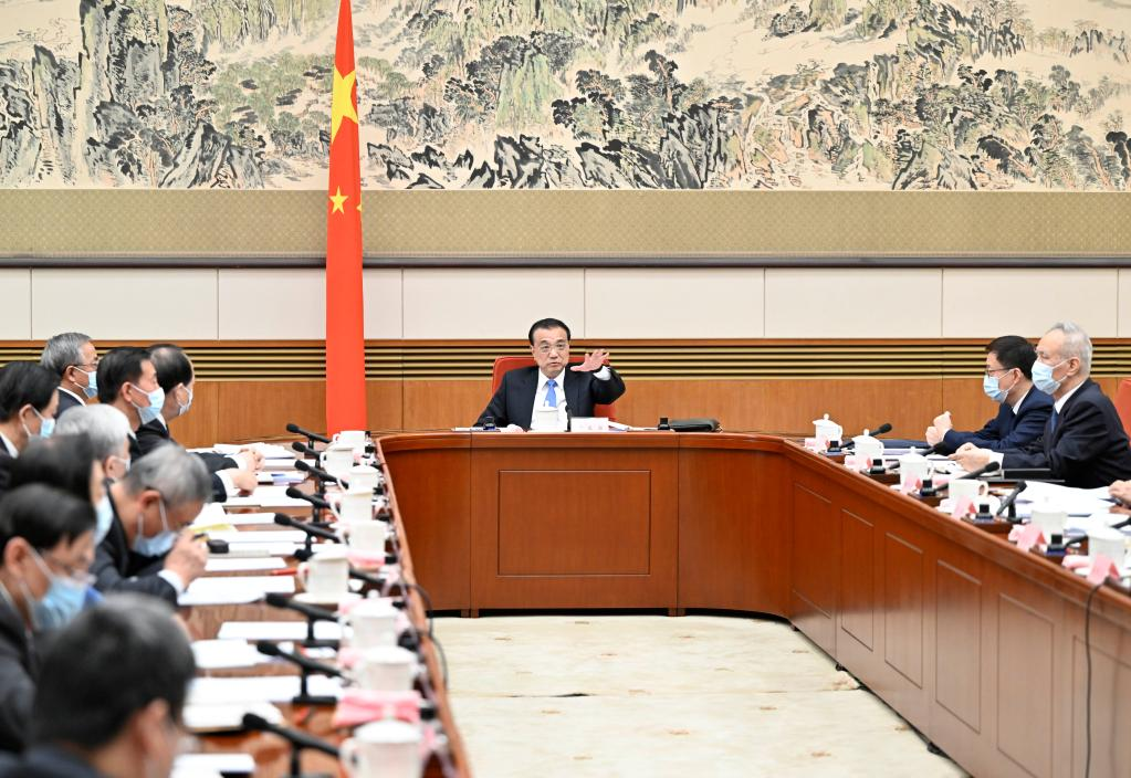 Chinese Premier Li Keqiang chairs a symposium to solicit opinions on a draft government work report from representatives of China's non-Communist parties, the All-China Federation of Industry and Commerce, and personages without party affiliation, on Feb. 13, 2023. Vice Premier Han Zheng attended the symposium. (Xinhua/Yin Bogu)