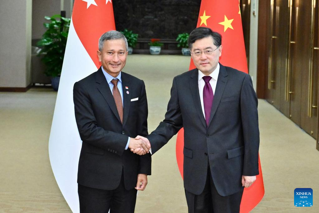 Chinese Foreign Minister Qin Gang met with his Singaporean counterpart Vivian Balakrishnan in Beijing on Monday.