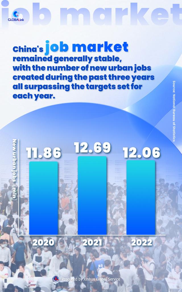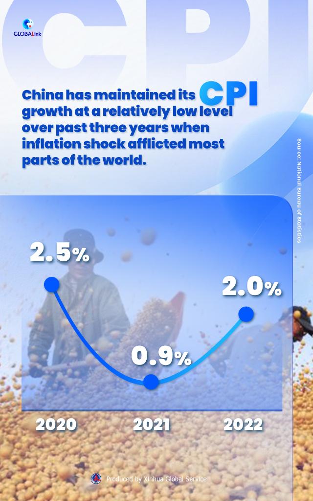 While inflation is a serious cause for concern faced by many major economies, China has kept its CPI growth at 2 percent in 2022, a relatively low level globally. A total of 11.86 million, 12.69 million and 12.06 million new urban jobs were created in 2020, 2021 and 2022, respectively, all surpassing the targets set for each year.