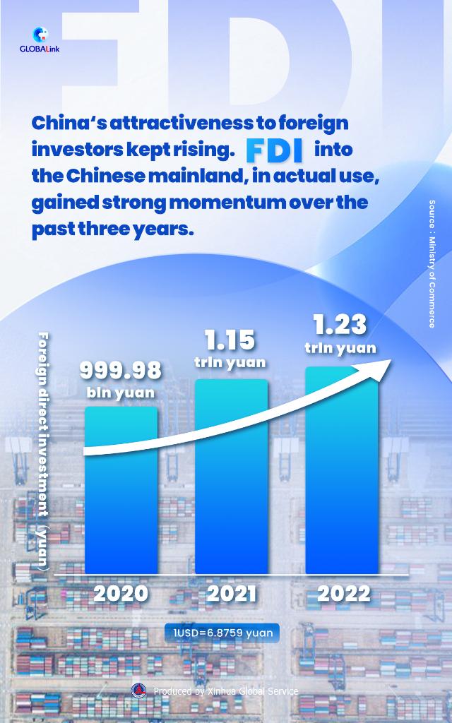 The latest data attests to China's rising allure to foreign investors. Foreign direct investment in the Chinese mainland, in actual use, expanded 10 percent year on year to 19.02 billion U.S. dollars in January, data from the Ministry of Commerce showed Monday.