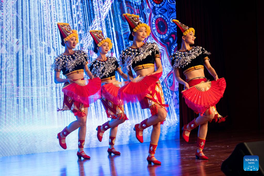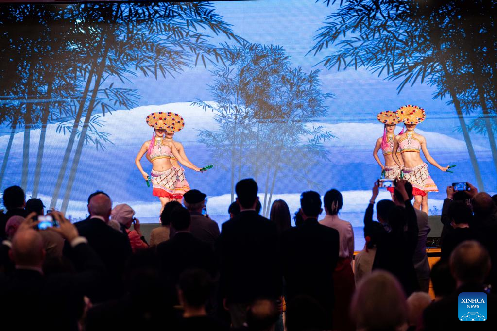 Artists perform a folk dance of Dai ethnic group at the Chinese Embassy in the United States in Washington, D.C., the United States, on May 6, 2023. The Chinese Embassy in the United States joined the Around the World Embassy Tour of Washington D.C. and held an open house event themed "Yunnan: A Many-Splendored Life" presenting the southwestern Chinese province on Saturday. (Xinhua/Liu Jie)