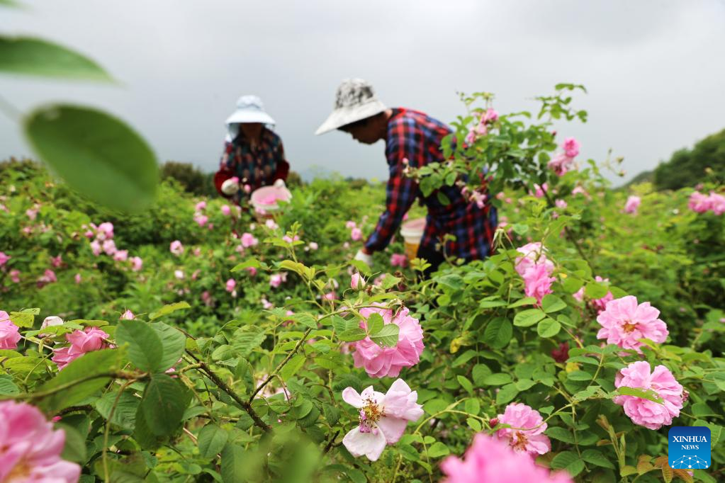 Farmers pick roses in Shangqiang Village, Huzhou City of east China's Zhejiang Province, May 6, 2023. Chinese farmers are busy with field works during "Lixia", the seventh solar term on the Chinese lunar calendar that marks the beginning of summer. (Photo by He Weiwei/Xinhua)