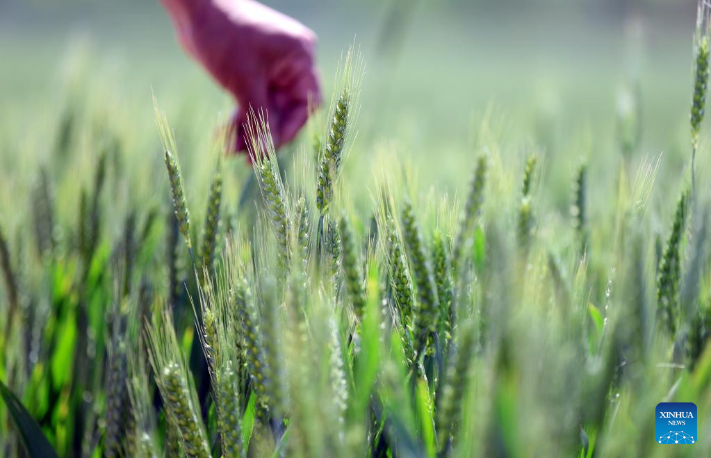 A farmer checks the growth of wheat in a field in Tancheng County, Linyi City of east China's Shandong Province, May 6, 2023. Chinese farmers are busy with field works during "Lixia", the seventh solar term on the Chinese lunar calendar that marks the beginning of summer. (Photo by Zhang Chunlei/Xinhua)