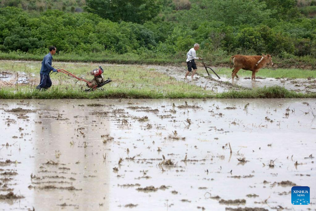 Farmers plough fields in Maoping Village, Tongren City of southwest China's Guizhou Province, May 6, 2023. Chinese farmers are busy with field works during "Lixia", the seventh solar term on the Chinese lunar calendar that marks the beginning of summer. (Photo by Liu Dejun/Xinhua)