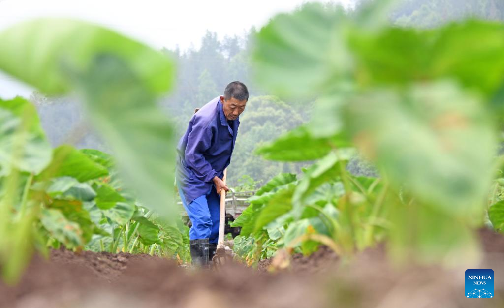 A farmer works in a field in Hetang Village, Taizhou City of east China's Zhejiang Province, May 6, 2023. Chinese farmers are busy with field works during "Lixia", the seventh solar term on the Chinese lunar calendar that marks the beginning of summer. (Photo by Wang Huabin/Xinhua)