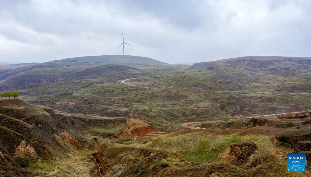 This aerial photo taken on May 9, 2023 shows landslides created by an earthquake over a century ago in Haiyuan County, Zhongwei City, northwest China's Ningxia Hui Autonomous Region. (Xinhua/Yang Zhisen)