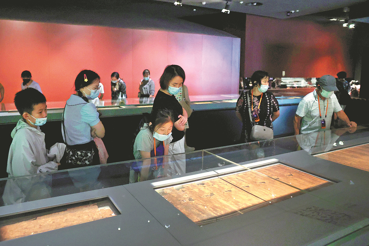 Visitors view exhibits on display at the Hunan Provincial Museum in Changsha, Hunan province, on Aug 6. [Photo provided to China Daily]