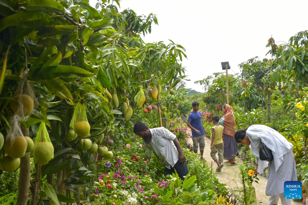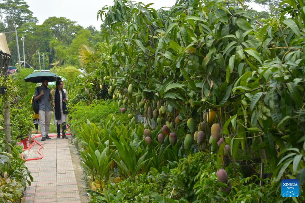 Visitors view plants during a tree fair in Dhaka, Bangladesh, June 13, 2023. A month-long tree fair, entitled "National Tree Fair", kicked off here on June 5 in Dhaka. (Xinhua)