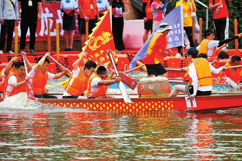 In the blazing sun, there were loud sounds of gongs, drums, and cheering along the Nanhu Lake bank of Mengzi City. Members of 39 teams from all prefectures (cities) in Yunnan Province worked together to paddle the boat quickly, rippling through waves. The cheering of spectators on the bank was rising and failing. “This competition is fantastic,” said Zhang Yu excitedly. He hoped the Dragon boat race could take place every year, as a traditional custom of the Dragon Boat Festival with deep cultural meaning in China.