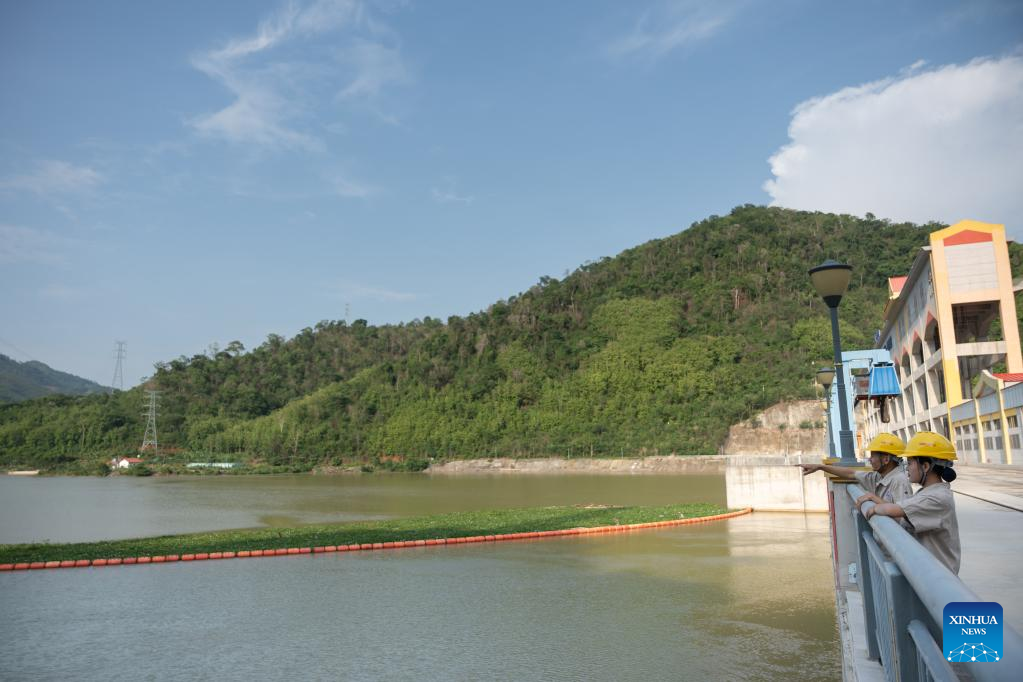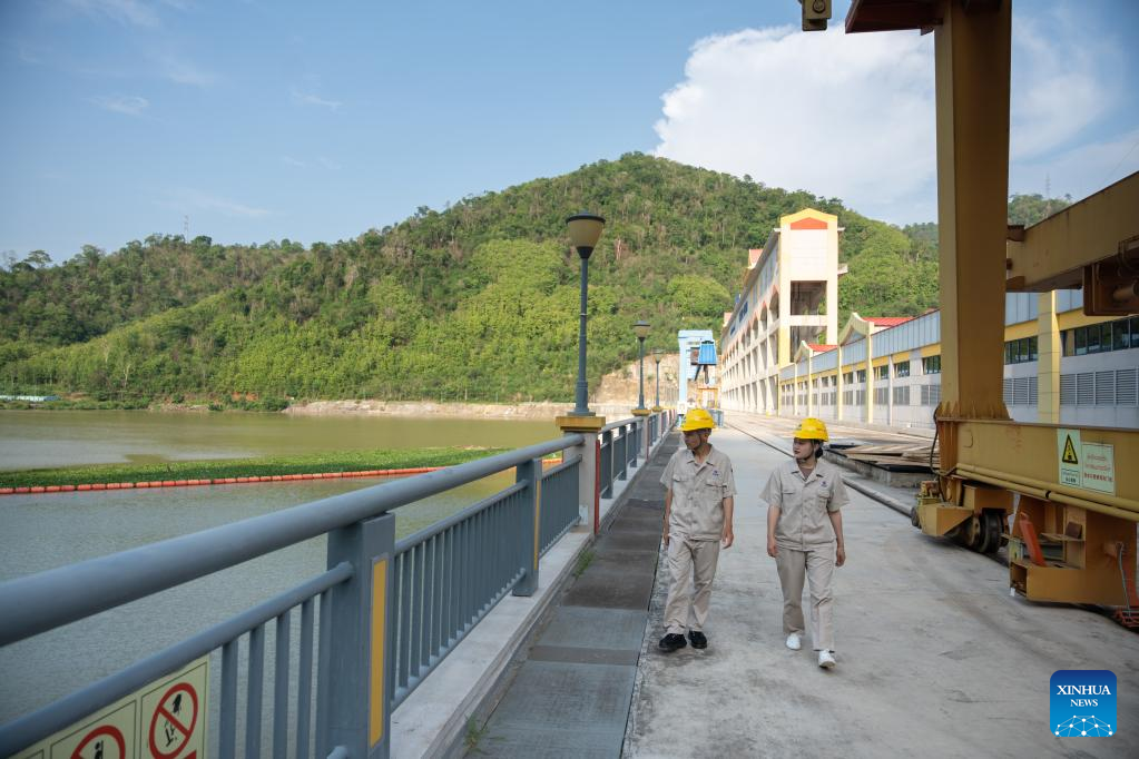 Nouphet Thongsakda (L) and Phavady Nalathone walk on the dam of the Nam Ou 1 hydropower plant invested by the Power Construction Corporation of China (PowerChina) in Luang Prabang, Laos, on June 16, 2023. Finding a life partner while chasing career dreams is not easy, but a young couple in northern Laos luckily got both when working for the PowerChina.(Photo by Kaikeo Saiyasane/Xinhua)