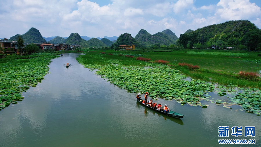 Photo taken on June 26th shows the best viewing period for the lotus in Puzhehei National Wetland Park. (Xinhua/Shi Jia)