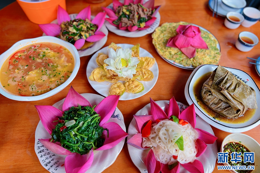 Photo shows Puzhehei’s special “l(fā)otus feast”. (Xinhua/Shi Jia)