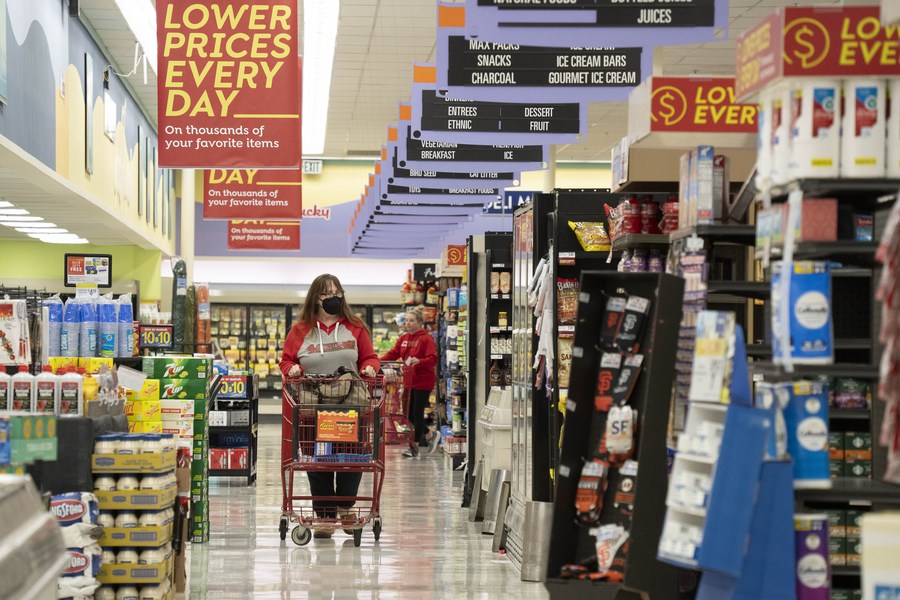 A customer shops at a supermarket in San Mateo, California, the United States, April 12, 2023. (Xinhua/Li Jianguo)