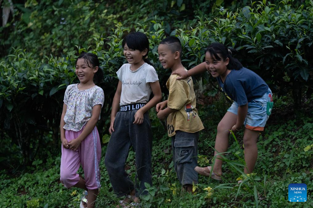 Children look at Asian elephants in Jiangcheng Hani and Yi Autonomous County of Pu'er, southwest China's Yunnan Province, July 19, 2023. Asian elephants, a pivotal species in the rainforest ecosystem, are under first-class national protection in China. The elephants are mostly found across Yunnan.