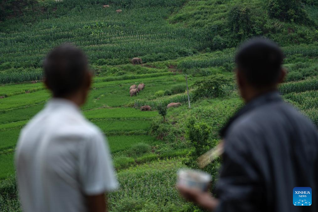 Local government has insured the farmers to protect their properties, and set up a team to observe the Asian elephants day and night to ensure the safety of villagers. (Xinhua/Lyu Shuai)
