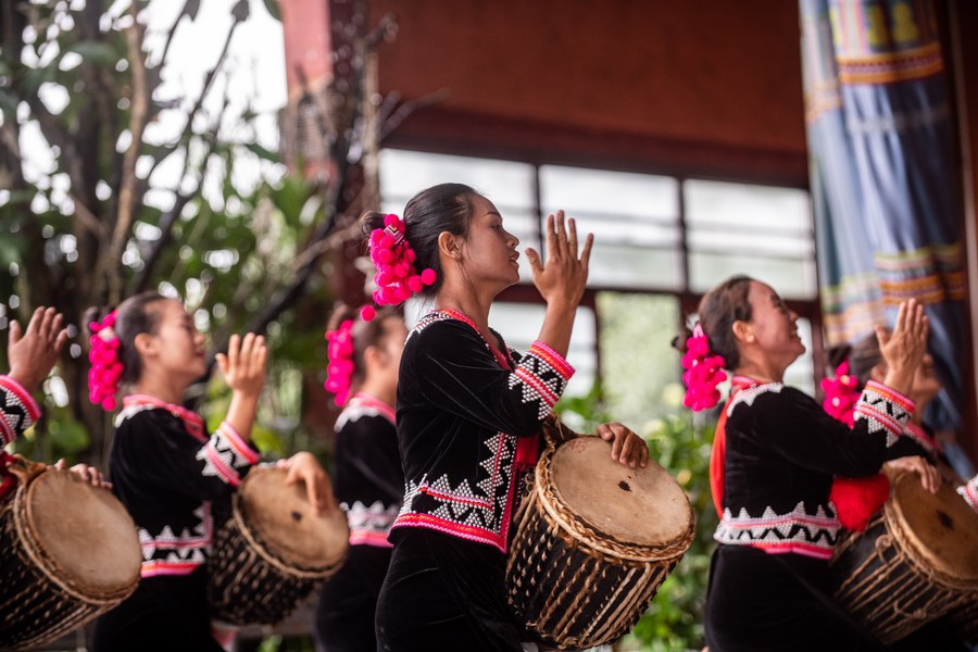 Villagers dance at Banli Village of Lancang Lahu Autonomous County, southwest China's Yunnan Province, July 20, 2023. (Xinhua/Hu Chao)
