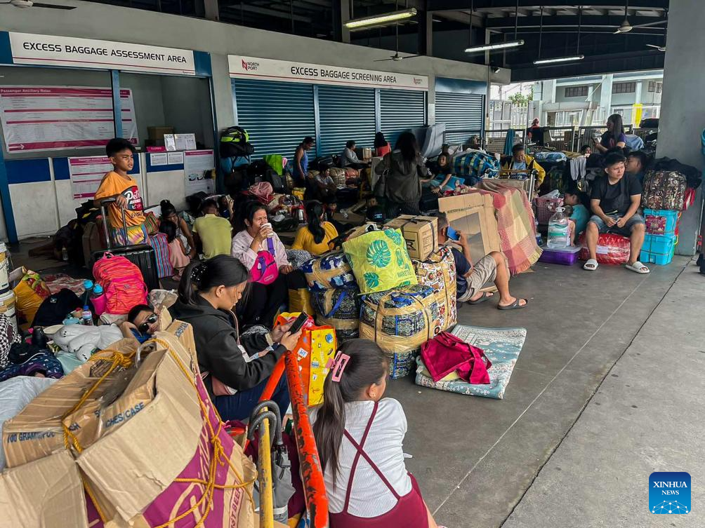 Passengers stranded due to Typhoon Doksuri take a rest at a port of Manila, the Philippines, on July 26, 2023. The Philippines' national disaster agency on Wednesday said it has so far tallied at least one dead as Typhoon Doksuri continued to batter the country with rain and strong winds. (Philippine Coast Guard/Handout via Xinhua)