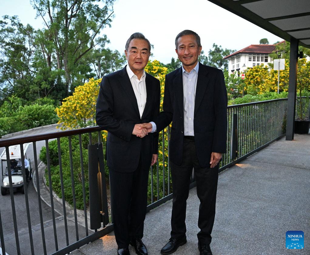 Chinese Foreign Minister Wang Yi, who is also a member of the Political Bureau of the Communist Party of China Central Committee, here on Thursday met with Singaporean Minister for Foreign Affairs Vivian Balakrishnan, with the two sides pledging to keep promoting the Belt and Road construction.