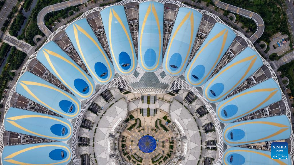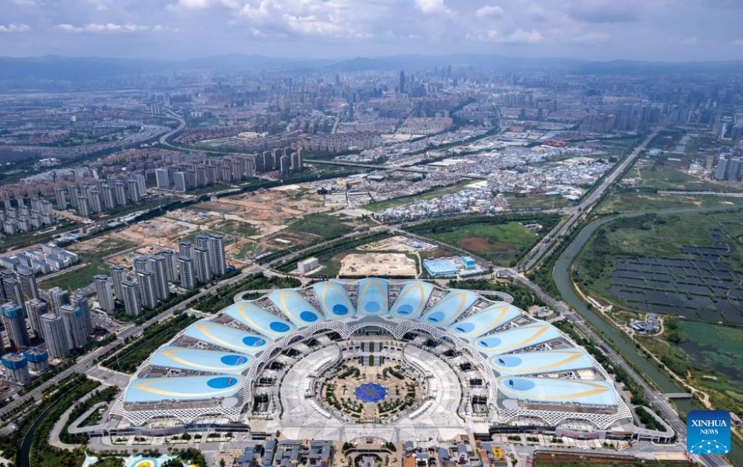 This photo taken on Aug. 16, 2023 shows a view of Kunming Dianchi International Convention and Exhibition Center, the venue for the seventh China-South Asia Expo in Kunming, southwest China's Yunnan Province. The seventh China-South Asia Expo kicked off Wednesday in Kunming.