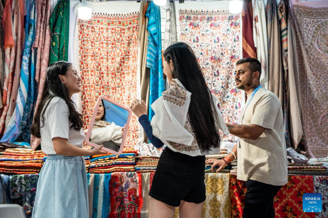 An exhibitor introduces products from Pakistan at the seventh China-South Asia Expo in Kunming, southwest China's Yunnan Province, Aug. 16, 2023. The seventh China-South Asia Expo kicked off Wednesday in Kunming.