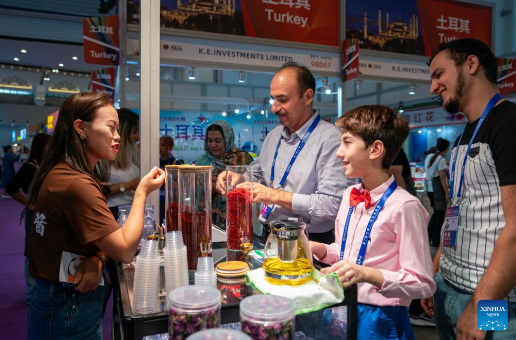 Exhibitors from Iran introduce saffron at the seventh China-South Asia Expo in Kunming, southwest China's Yunnan Province, Aug. 16, 2023. The seventh China-South Asia Expo kicked off Wednesday in Kunming.